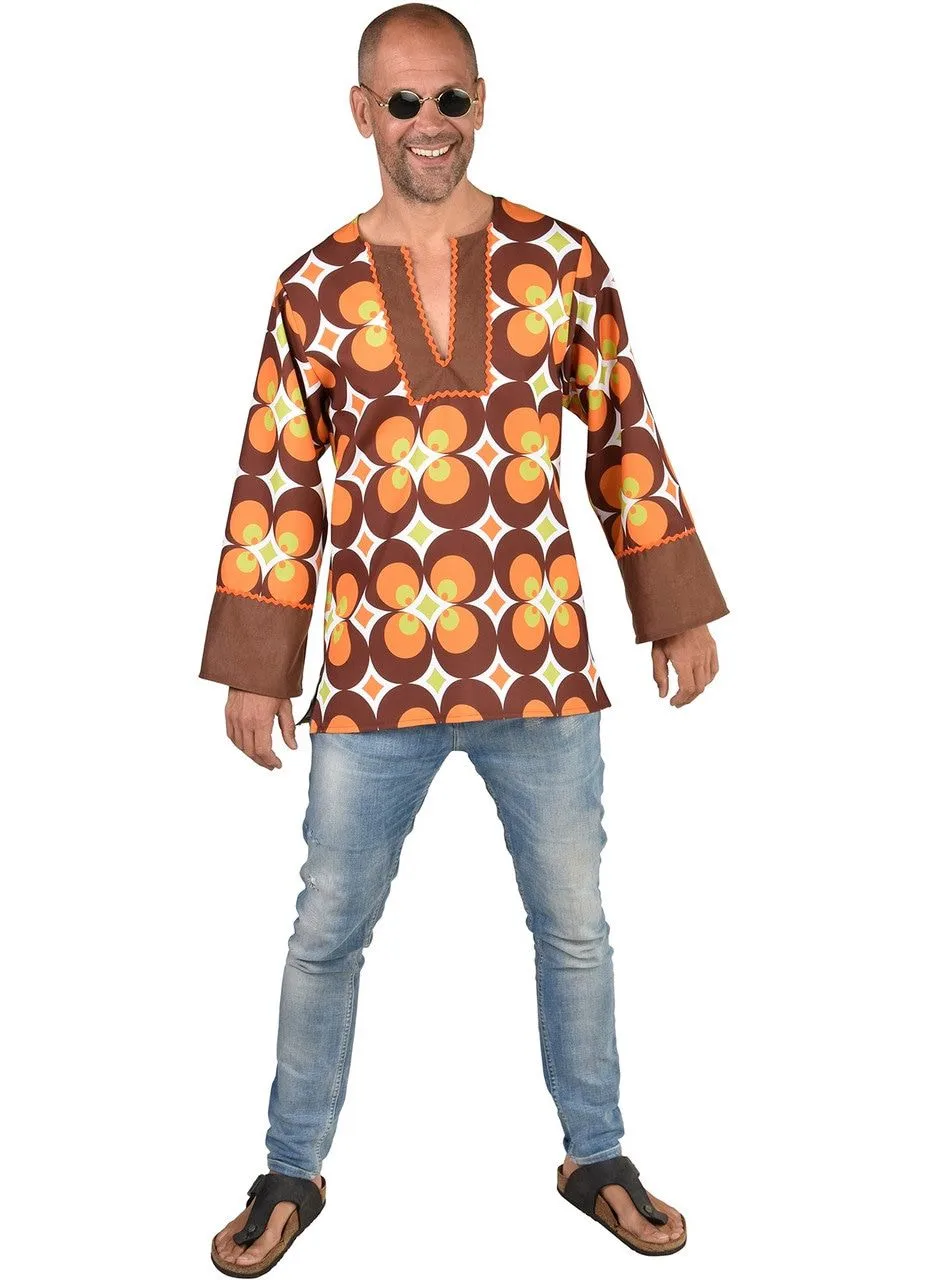 70s Bruine Bloemen Tuniek Boudewijn Man