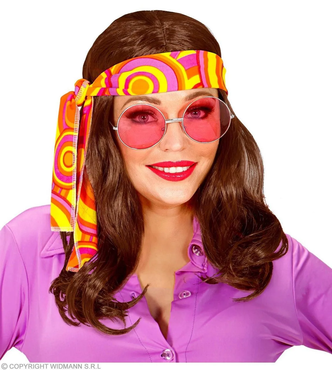 70s Pruik Met Hoofdband Bruin
