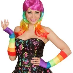 Tachtiger Jaren Vingerloze Handschoenen Satijn, Regenboog Kleuren
