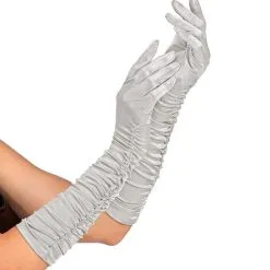 Zilveren Satijnen Handschoenen Plisse 44 Centimeter