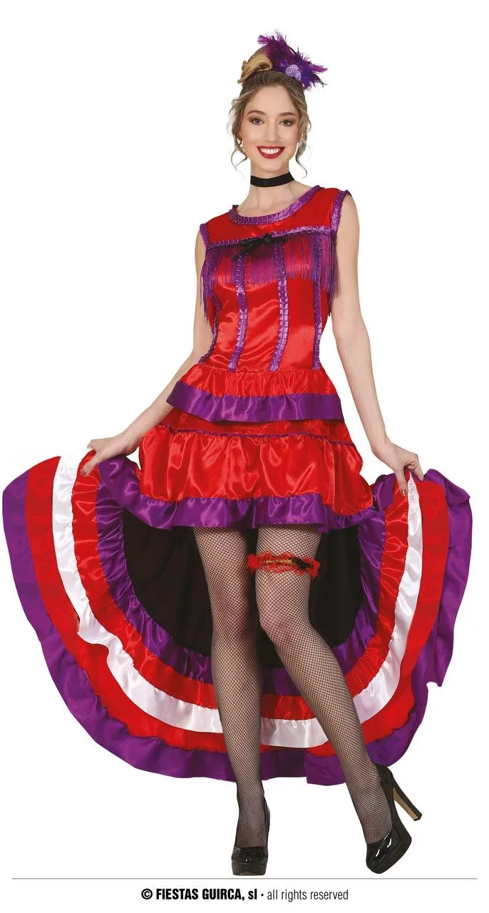Can Can Showgirl Rood Paars Vrouw Kostuum