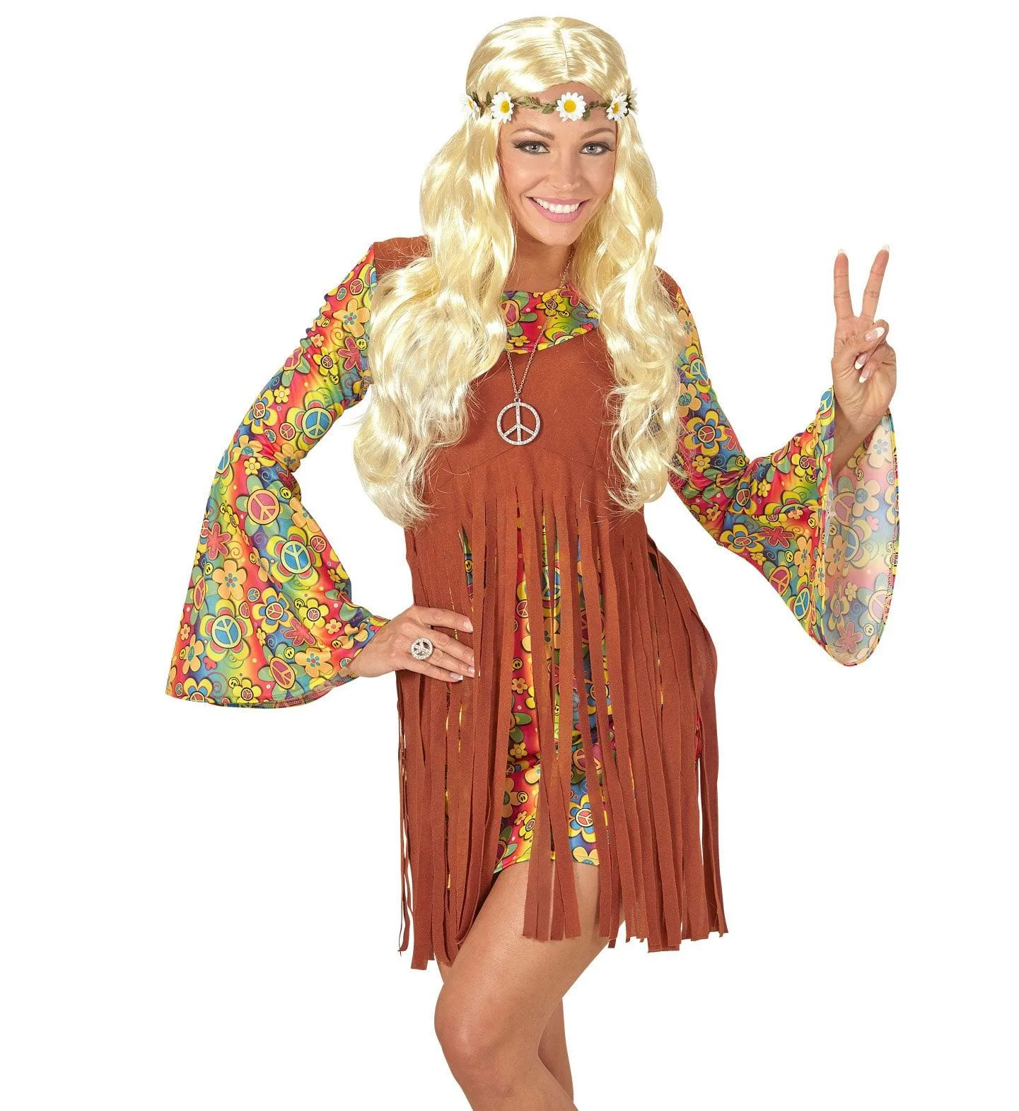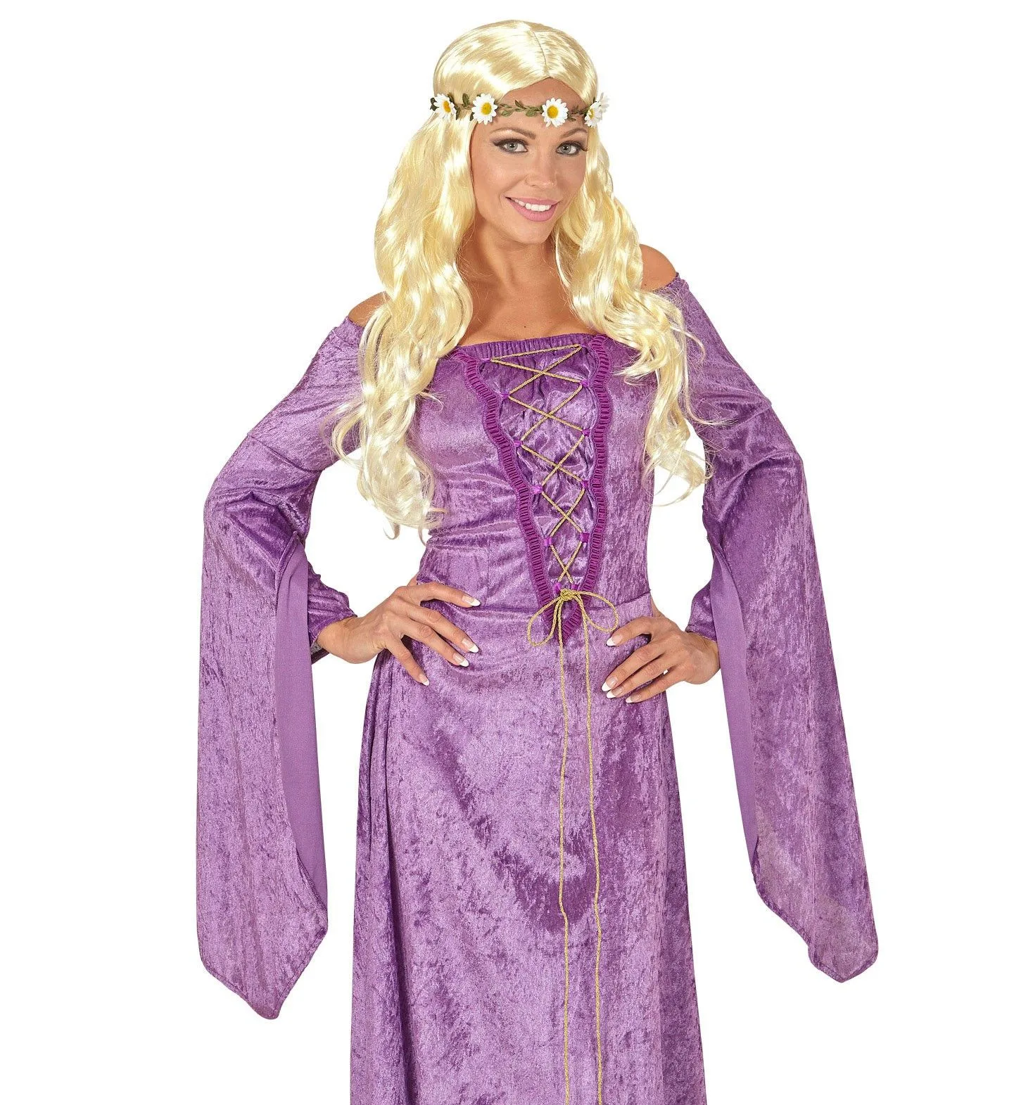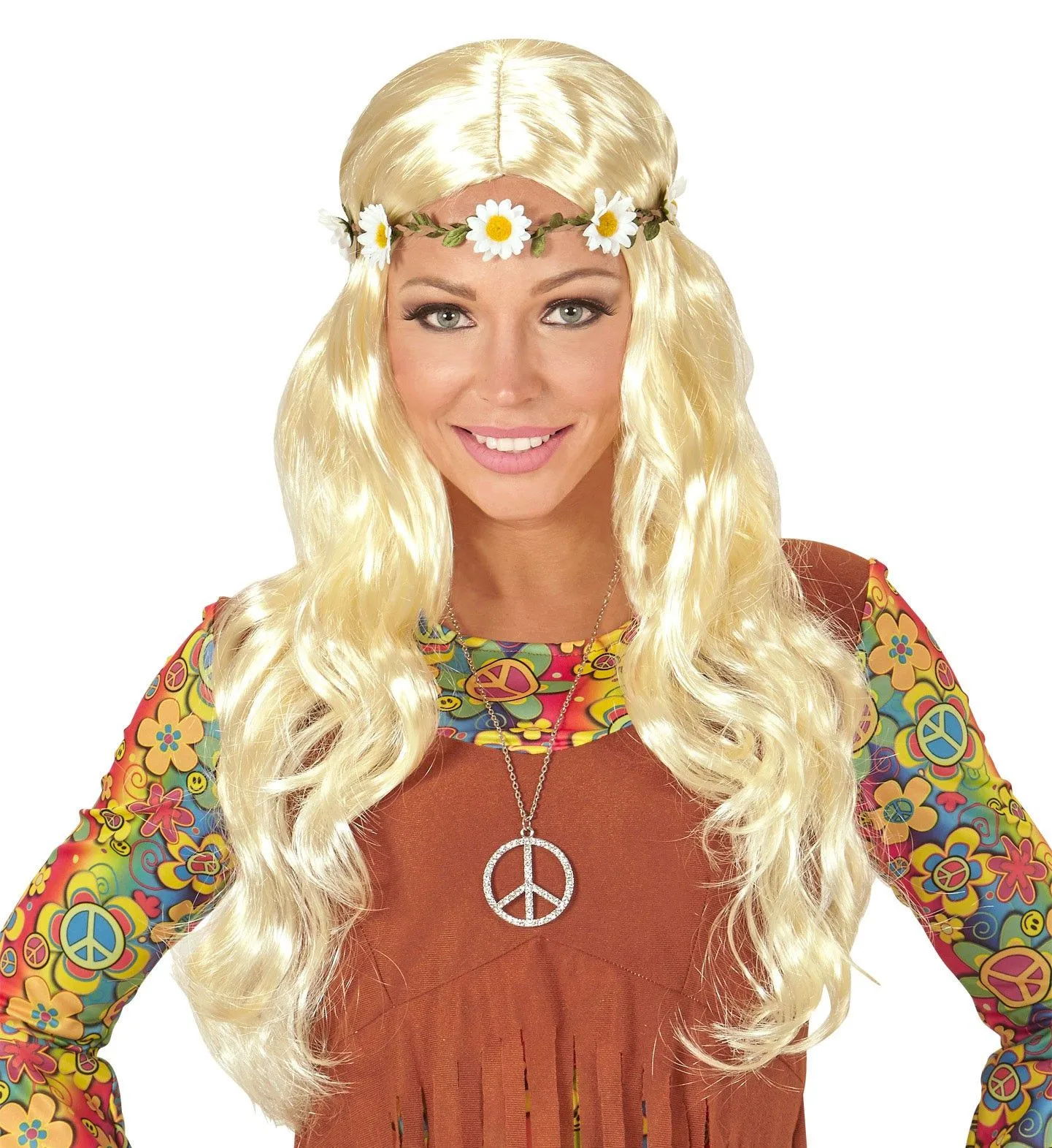 Curly Carla Pruik, Hippie / Middeleeuwen Blond Met Bloemen Hoofdband