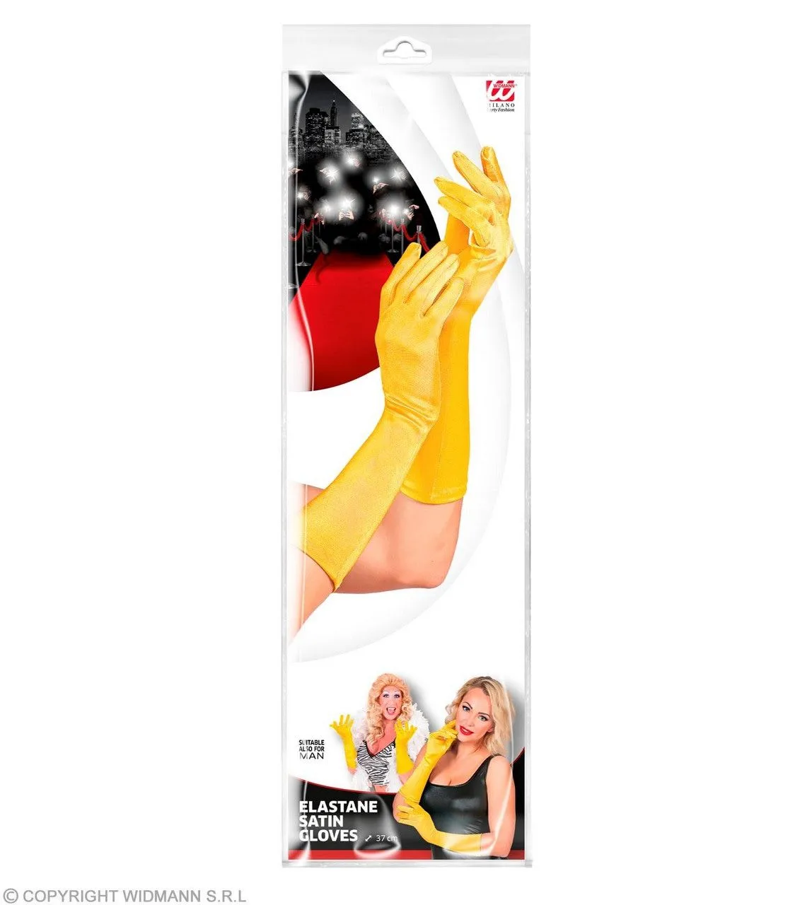 Elegante Handschoenen Satijn Elastaan 40 Centimeter Geel