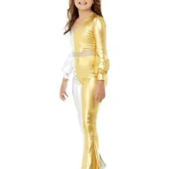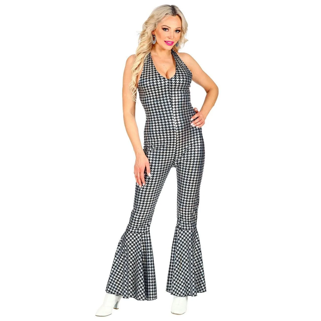 Oeh lala, in je nauwsluitend flitsend in de disco 70’s jumpsuit dameskleding zet je niet alleen de dansvloer in vuur en vlam met je sensationele danspassen uit Saturday Night Fever, de andere feestgangers breekt ook spontaan het zweet uit! Concurreren met een knappe meid in een metallic kostuum valt niet mee!