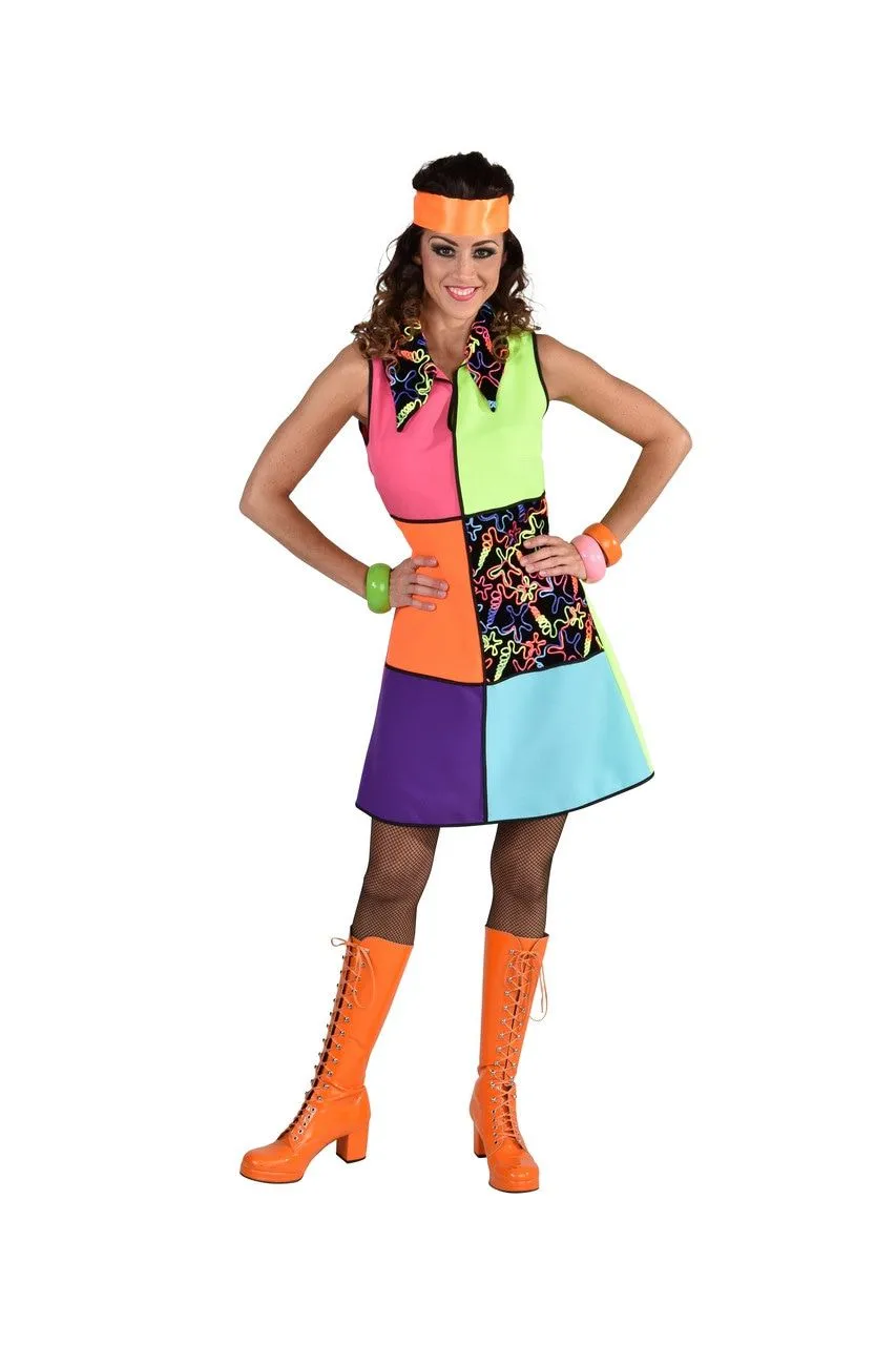 Grote Kleurige Vlakken Jaren 80 Neon Swirls Vrouw Kostuum
