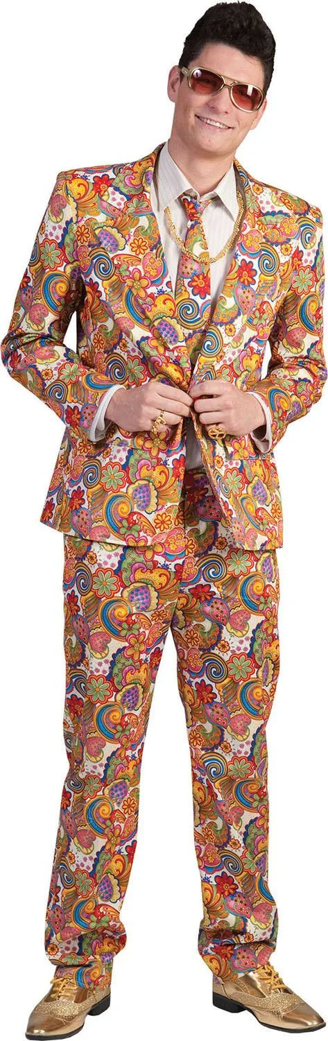 Dit Hippie Pimp Pak is über druk. Om nu te beweren dat je er in je Opposuits & Crazy Suits kleding als een pooier uitziet is misschien al te bout maar je hebt niet bepaald een kostuum aan waarmee je op het hoofdkantoor van de Nederlands Bank kunt gaan werken. Of misschien ook wel. Ze kunnen in de financiële wereld best wel een beetje meer de Flower Power mentaliteit van de Jaren 60 & 70 gebruiken.