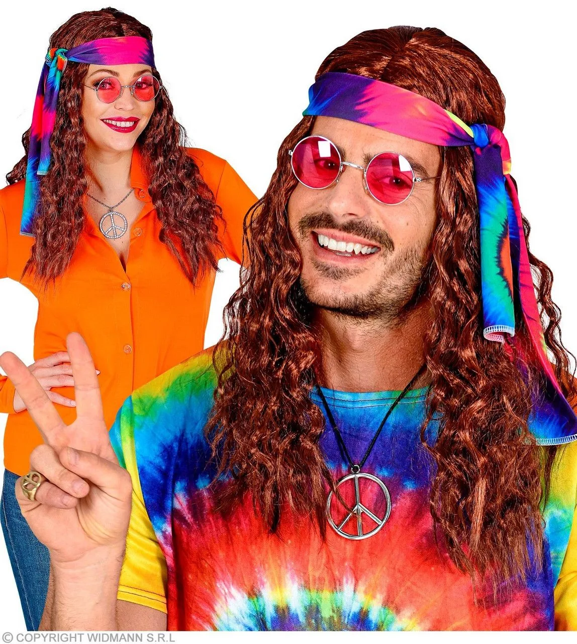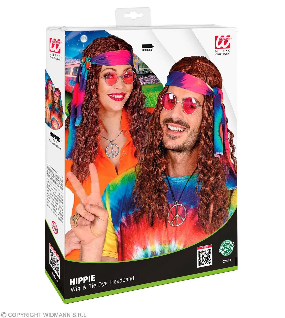 Hippie Pruik Met Hoofdband Tie Dye Bruin