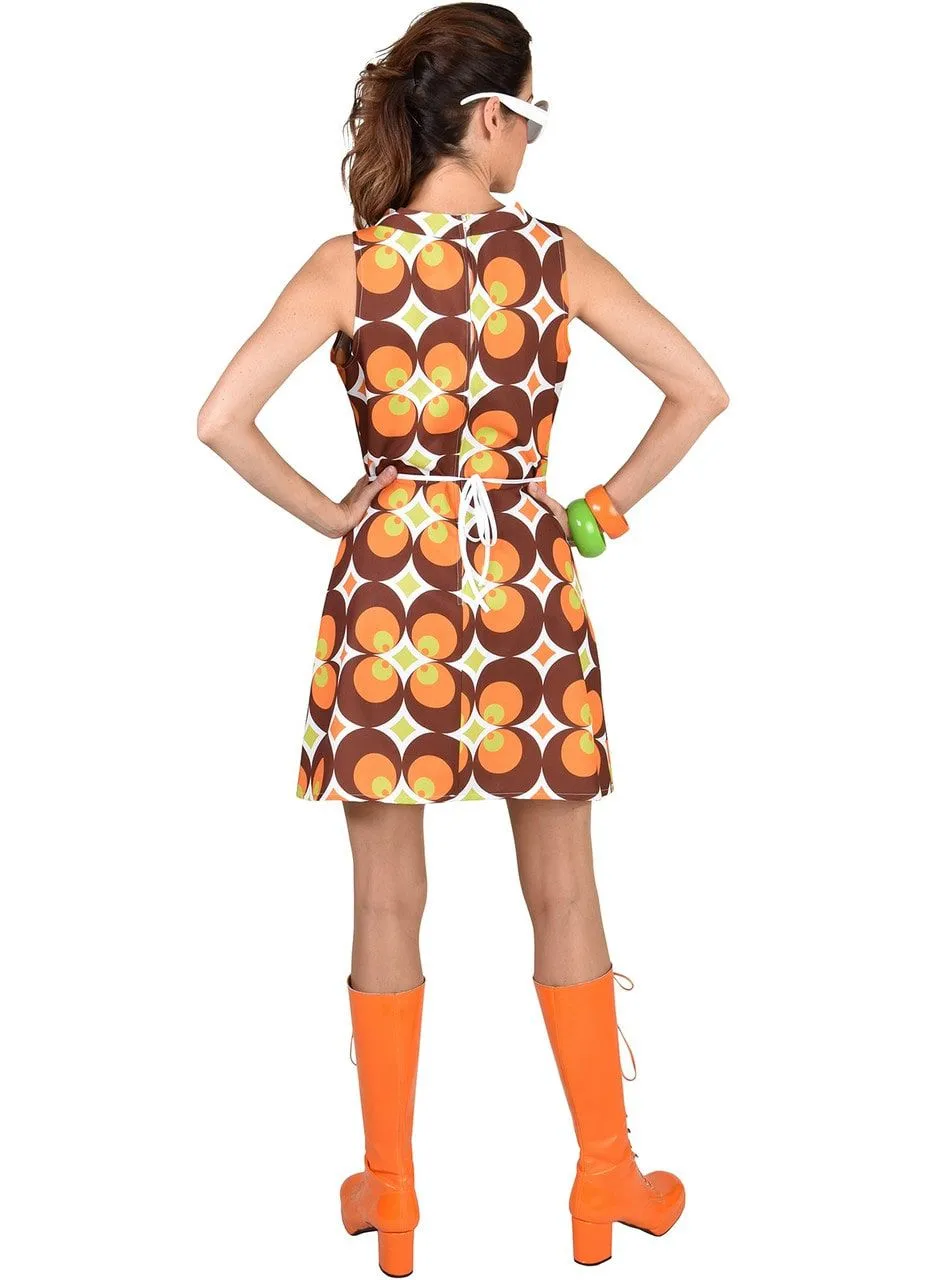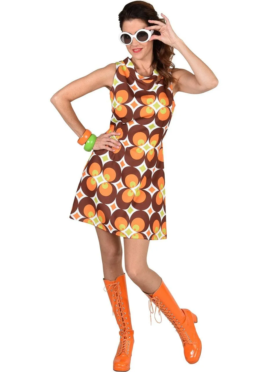 Jaren 60 Oranje Bloemen Jurk Vrouw
