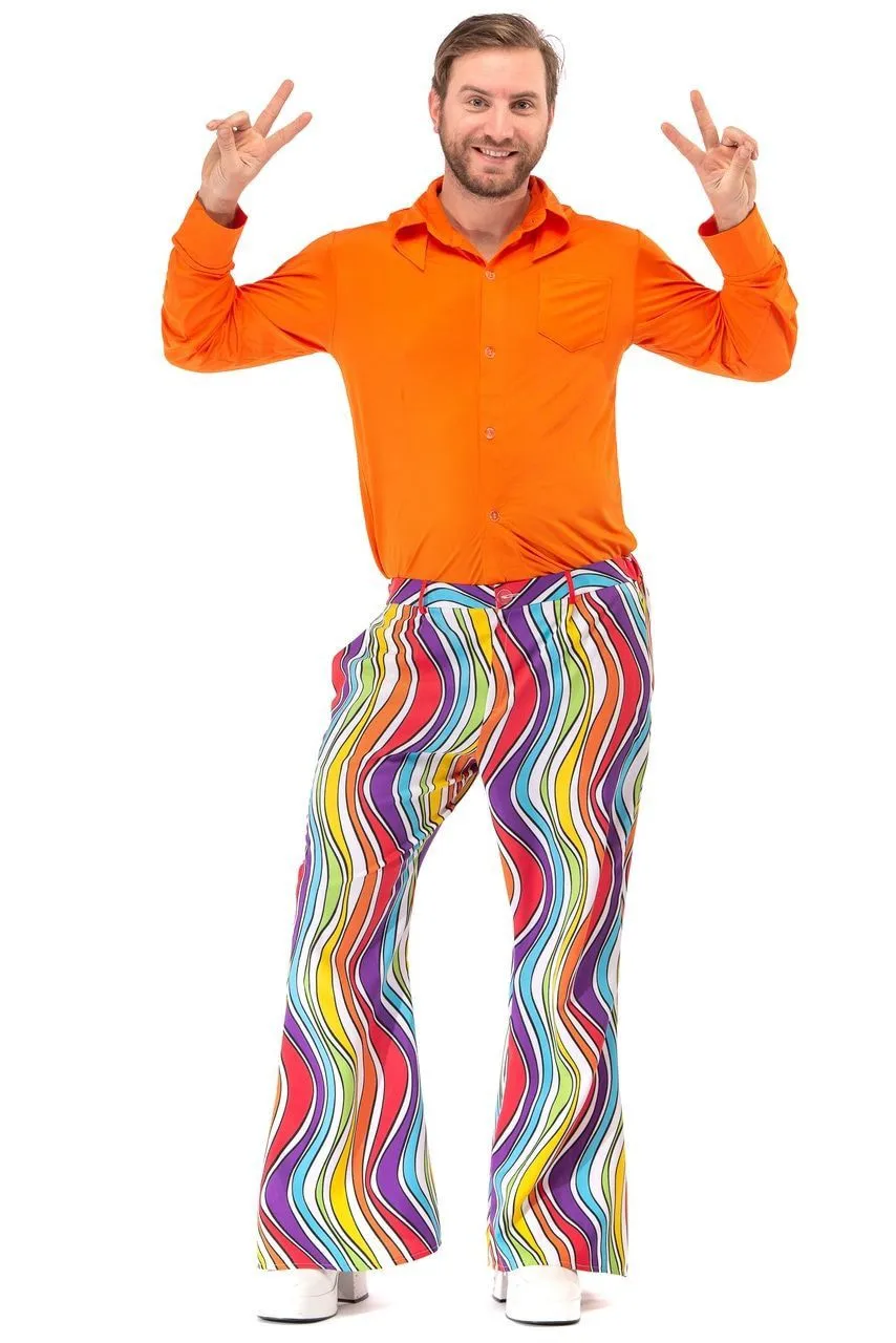 Jaren 60 Regenboog Flower Power Hippie Festival Broek Man
