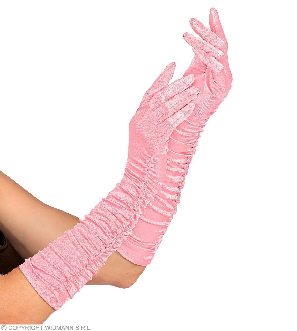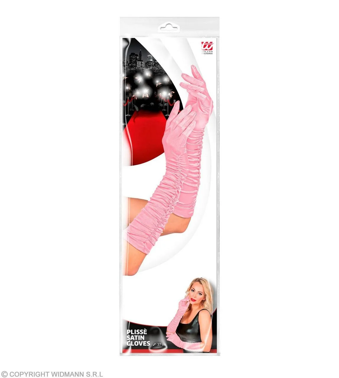 Roze Satijnen Handschoenen Prinses Peach Plisse 44 Centimeter