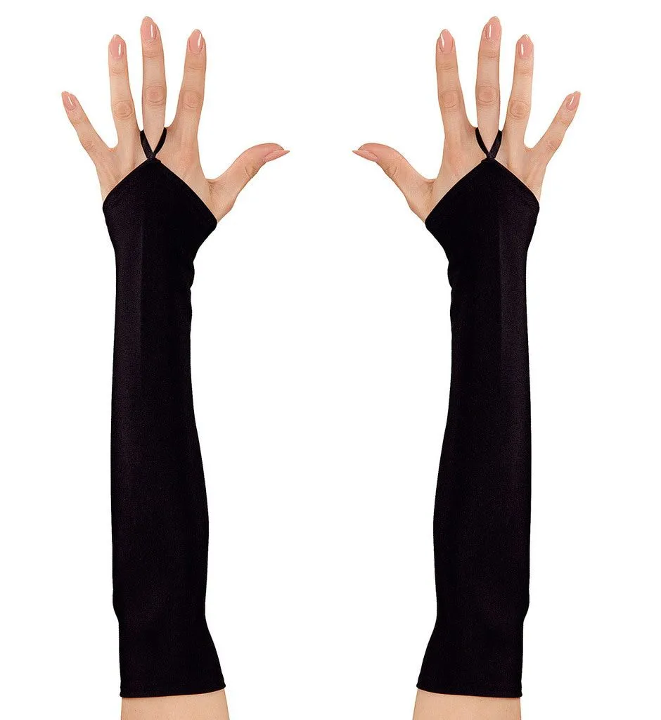 Tachtiger Jaren Vingerloze Handschoenen Satijn, Zwart