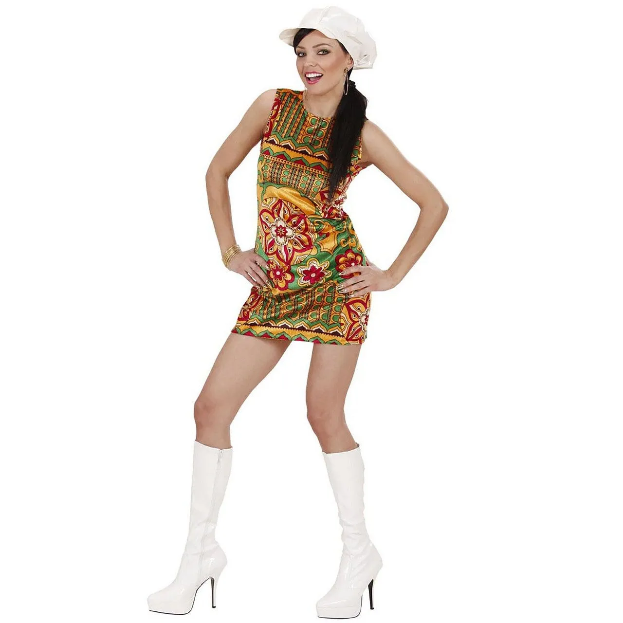 In dit Woodstock 60s Mode Meisje Fluweel Met Muts Kostuum val je op een flower power feest zeker niet uit de toon. De sfeer van de jaren 60 komt in deze kleding goed tot uiting. Die sfeer van geloof in een betere en vrijere wereld kunnen we zeker nu weer goed gebruiken. En de muziek uit die jaren was ook behoorlijk cool. Wedden dat jij in je vrolijke pak zo de teksten van Janis Joplin en Bob Dylan mee kunt zingen?